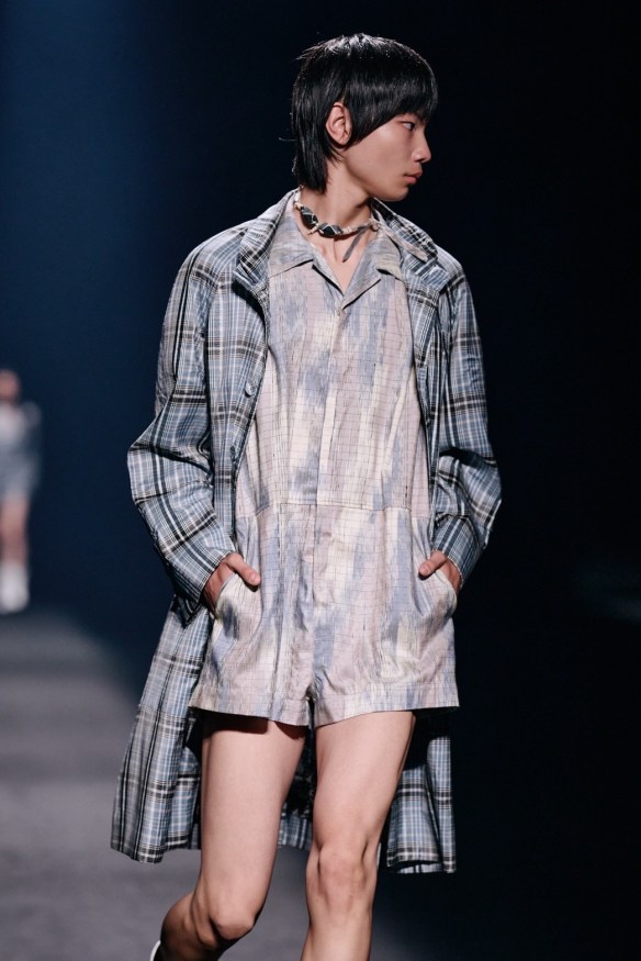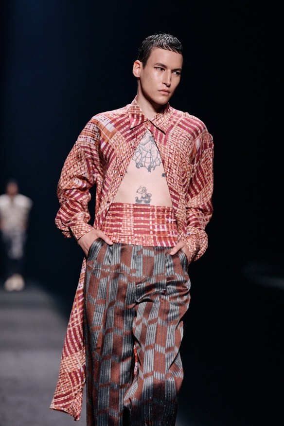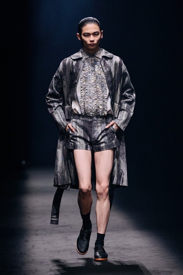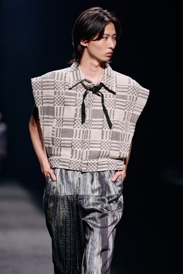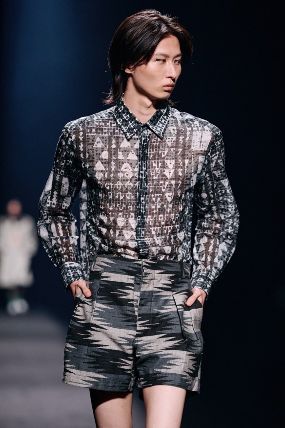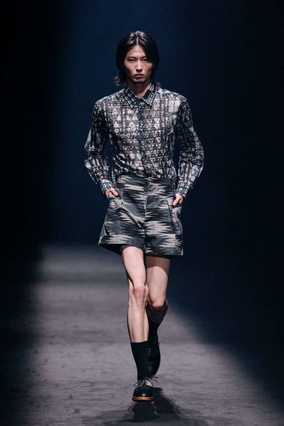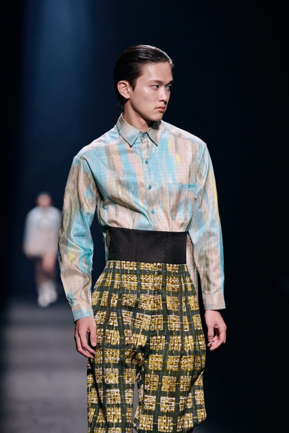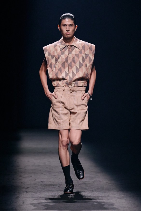 Thai fashion brand WISHARAWISH, led by designer Wisharawish Akarasantisook, renowned for his distinctive creations rooted in Thai textiles, presented its Spring/Summer 2026 collection at Rakuten Fashion Week Tokyo 2026 SS. The collection draws inspiration from the lives of “displaced hunters” in the quiet moments after their daily routines, when they pause to gather forest goods and forage for mushrooms on their way home. These small yet profound joys are delicately translated into contemporary fashion.
