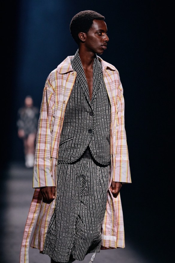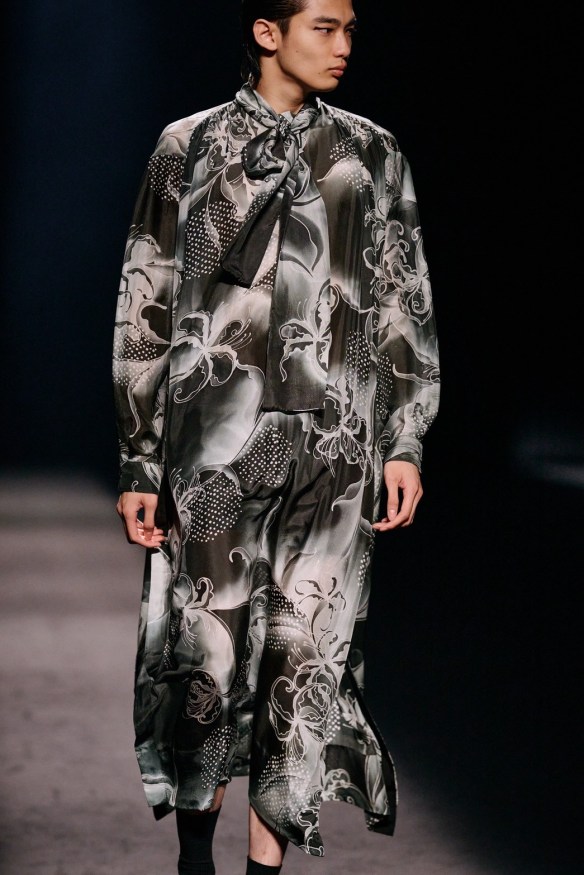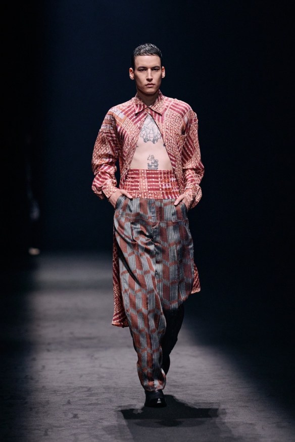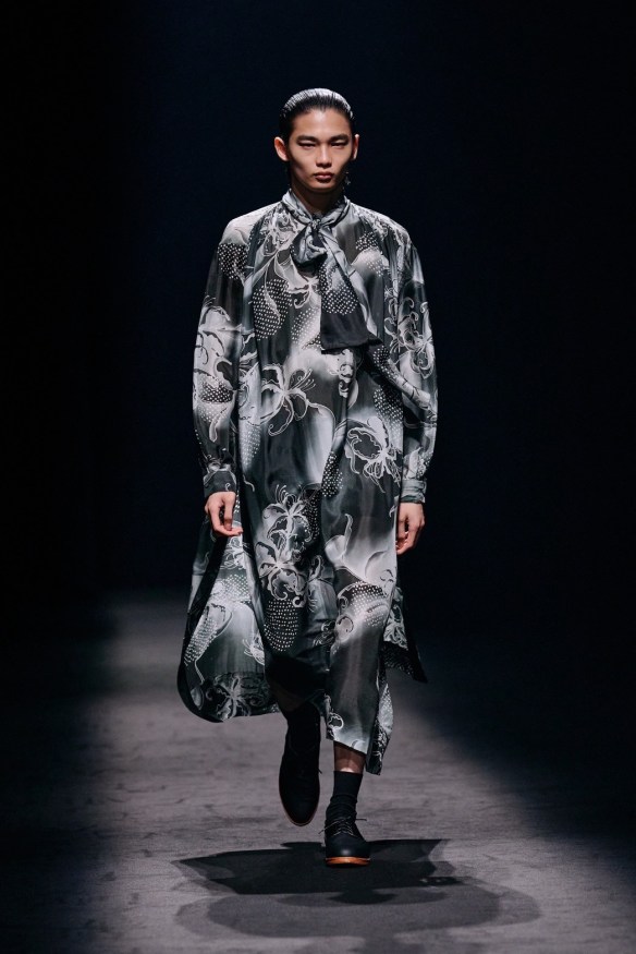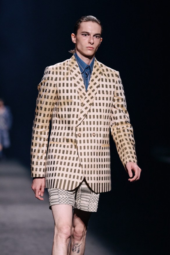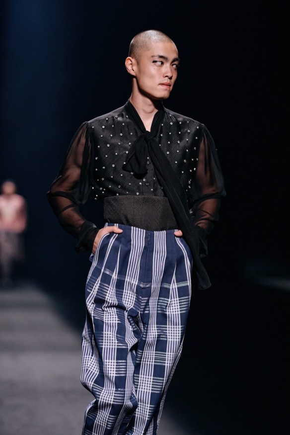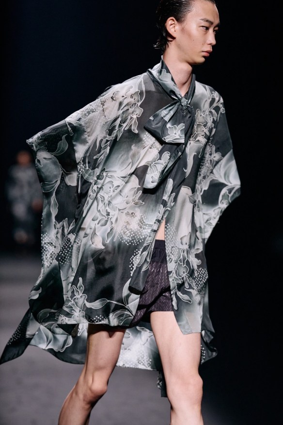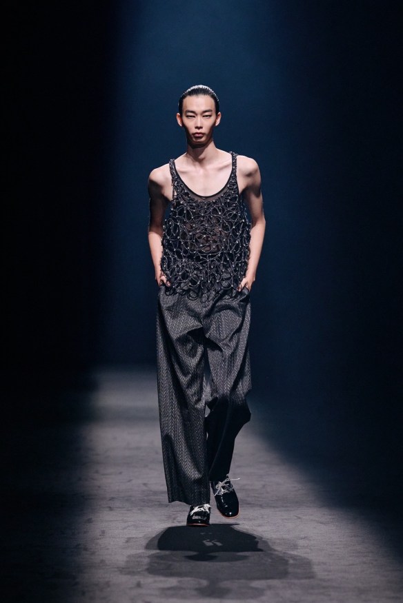 Thai fashion brand WISHARAWISH, led by designer Wisharawish Akarasantisook, renowned for his distinctive creations rooted in Thai textiles, presented its Spring/Summer 2026 collection at Rakuten Fashion Week Tokyo 2026 SS. The collection draws inspiration from the lives of “displaced hunters” in the quiet moments after their daily routines, when they pause to gather forest goods and forage for mushrooms on their way home. These small yet profound joys are delicately translated into contemporary fashion.