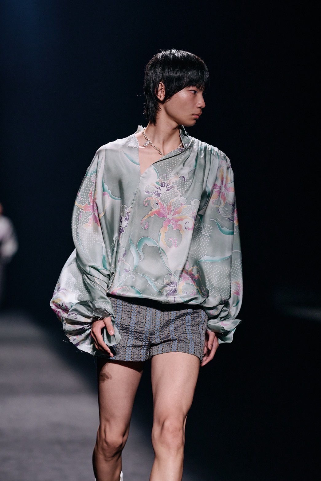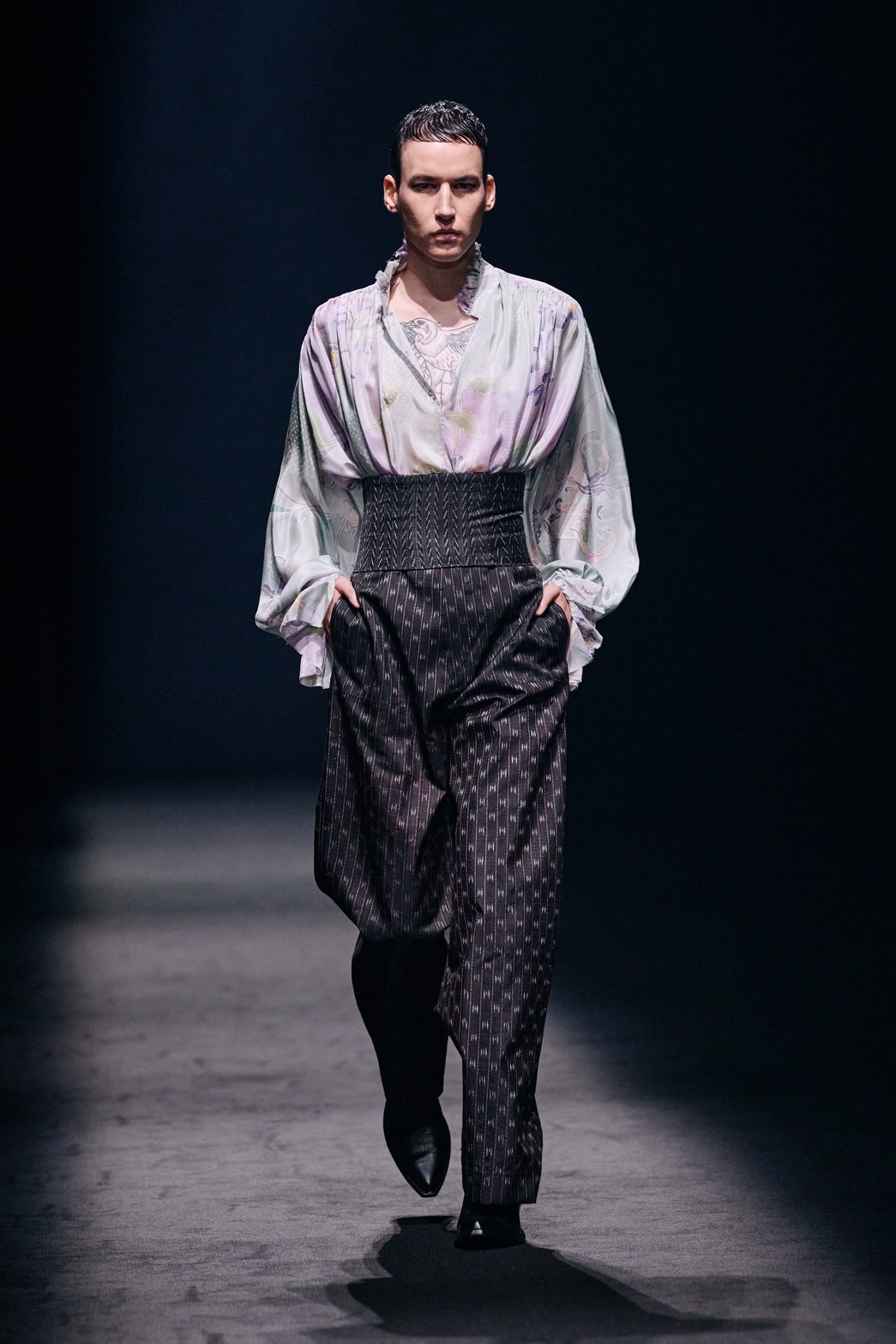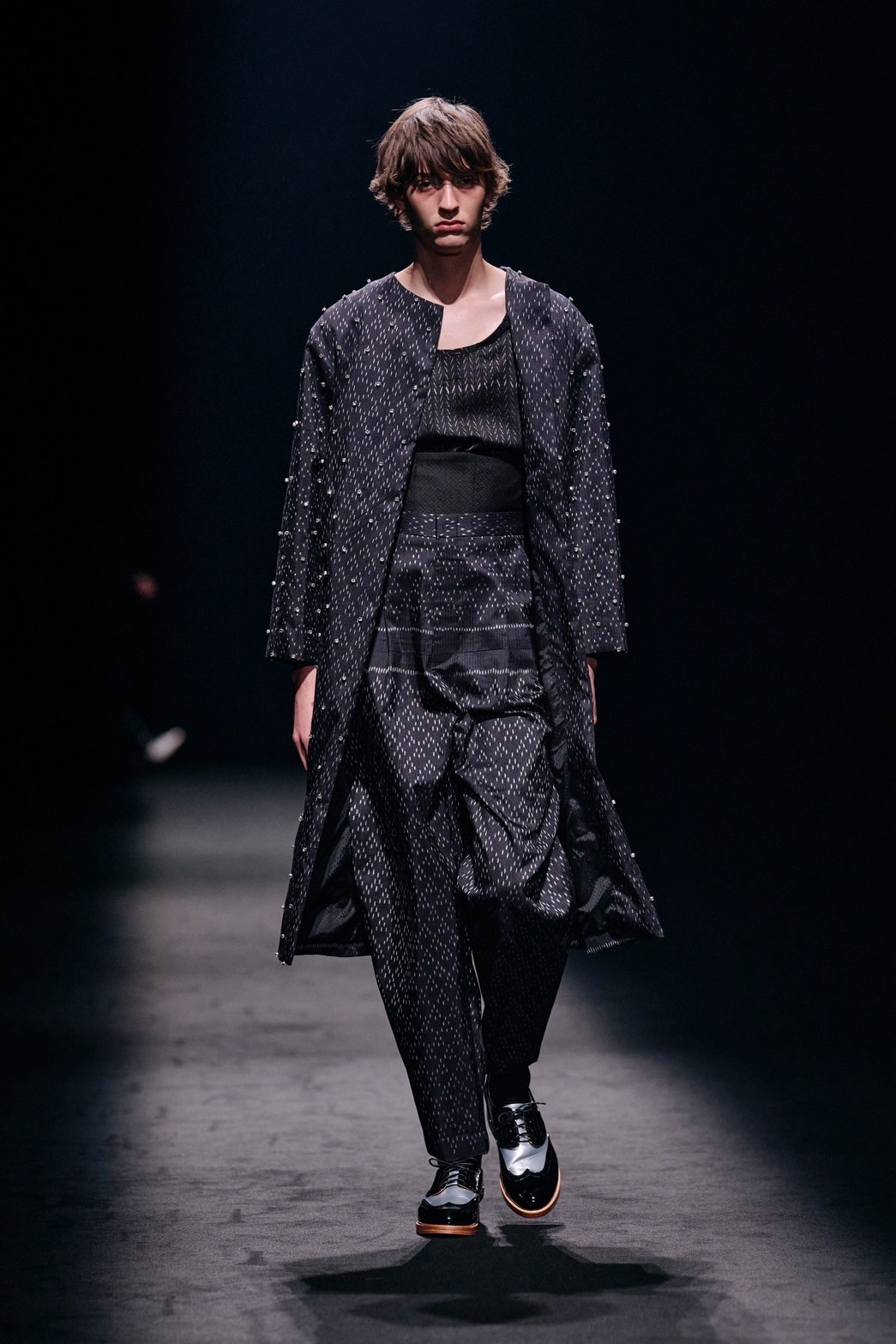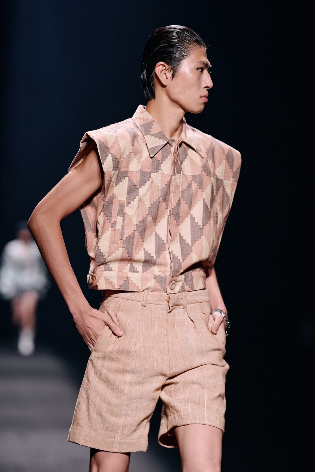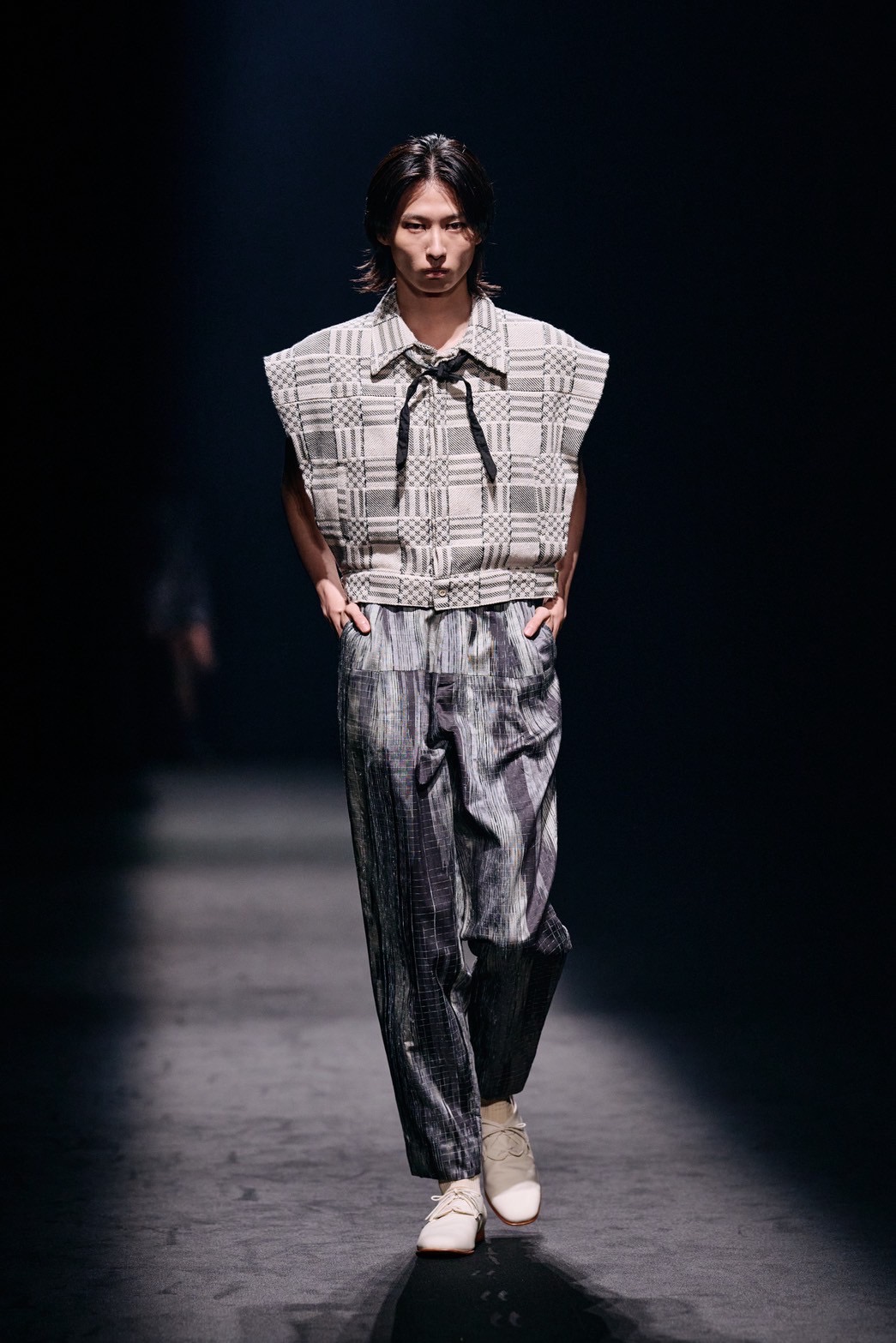 Thai fashion brand WISHARAWISH, led by designer Wisharawish Akarasantisook, renowned for his distinctive creations rooted in Thai textiles, presented its Spring/Summer 2026 collection at Rakuten Fashion Week Tokyo 2026 SS. The collection draws inspiration from the lives of “displaced hunters” in the quiet moments after their daily routines, when they pause to gather forest goods and forage for mushrooms on their way home. These small yet profound joys are delicately translated into contemporary fashion.