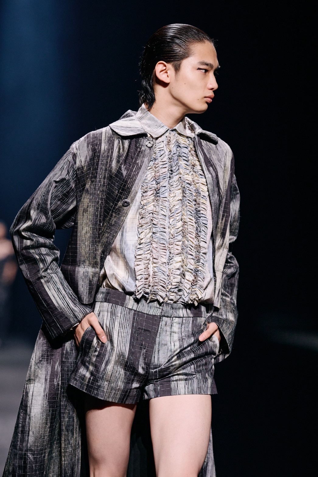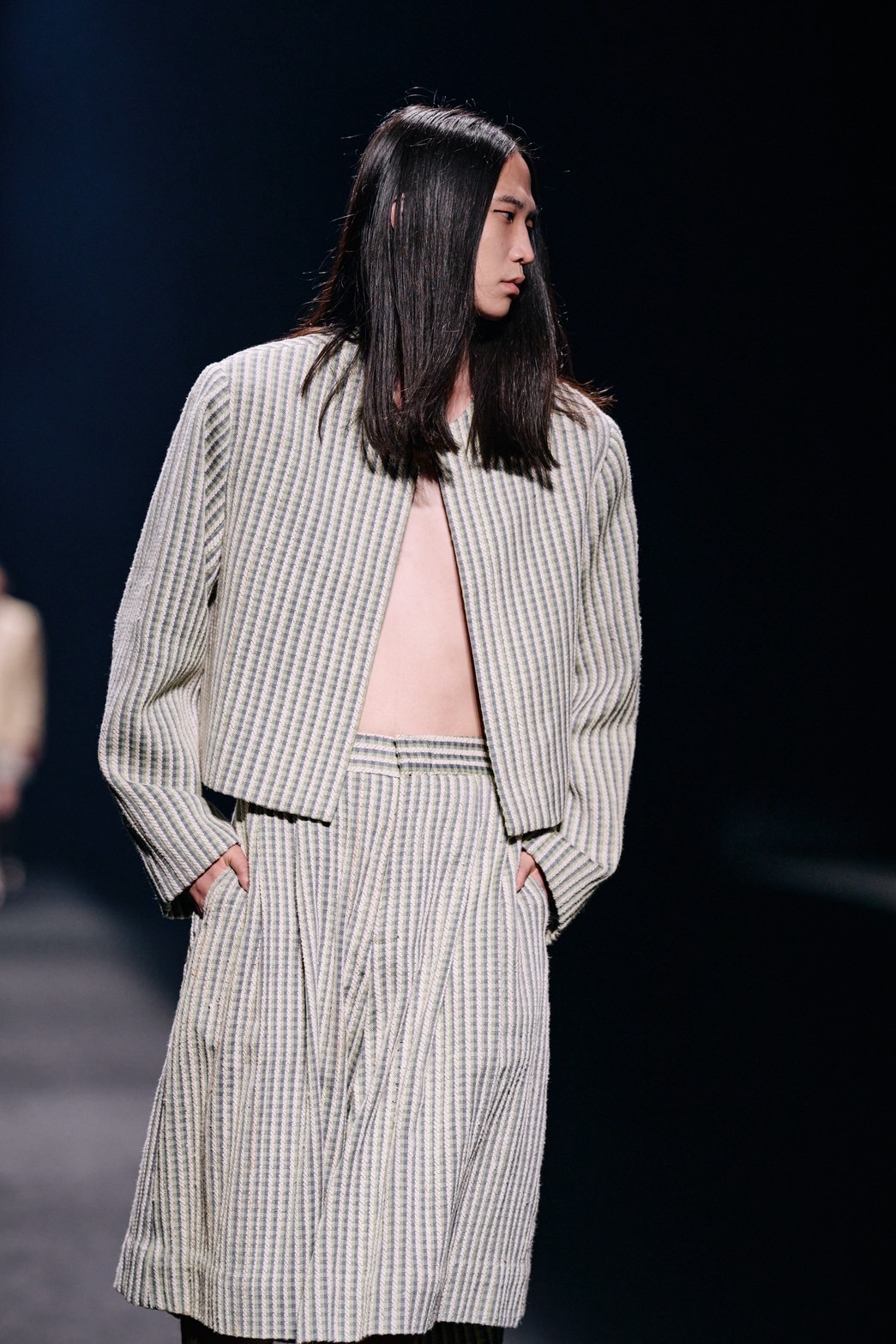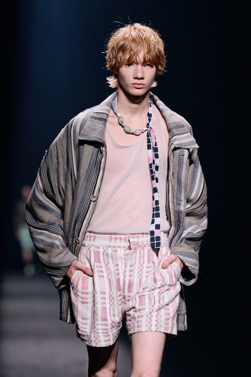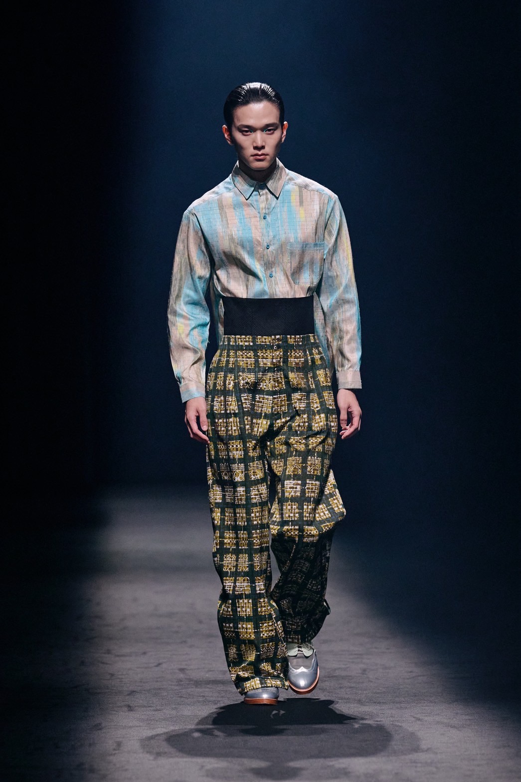 Thai fashion brand WISHARAWISH, led by designer Wisharawish Akarasantisook, renowned for his distinctive creations rooted in Thai textiles, presented its Spring/Summer 2026 collection at Rakuten Fashion Week Tokyo 2026 SS. The collection draws inspiration from the lives of “displaced hunters” in the quiet moments after their daily routines, when they pause to gather forest goods and forage for mushrooms on their way home. These small yet profound joys are delicately translated into contemporary fashion.
