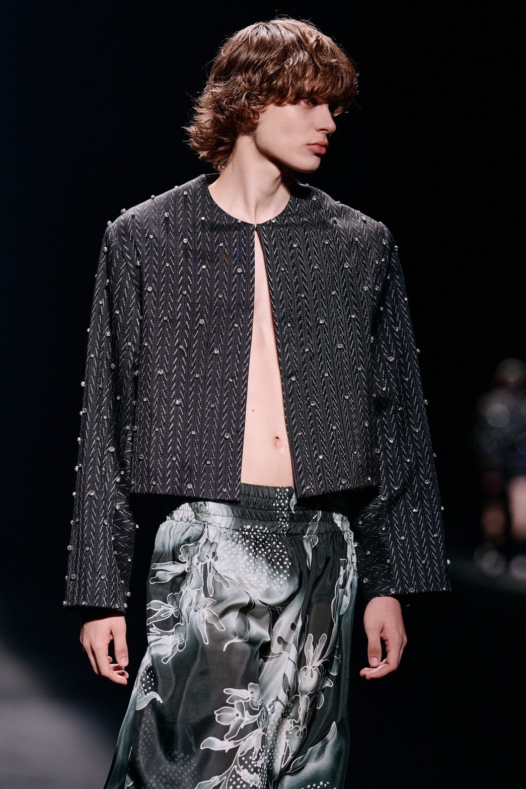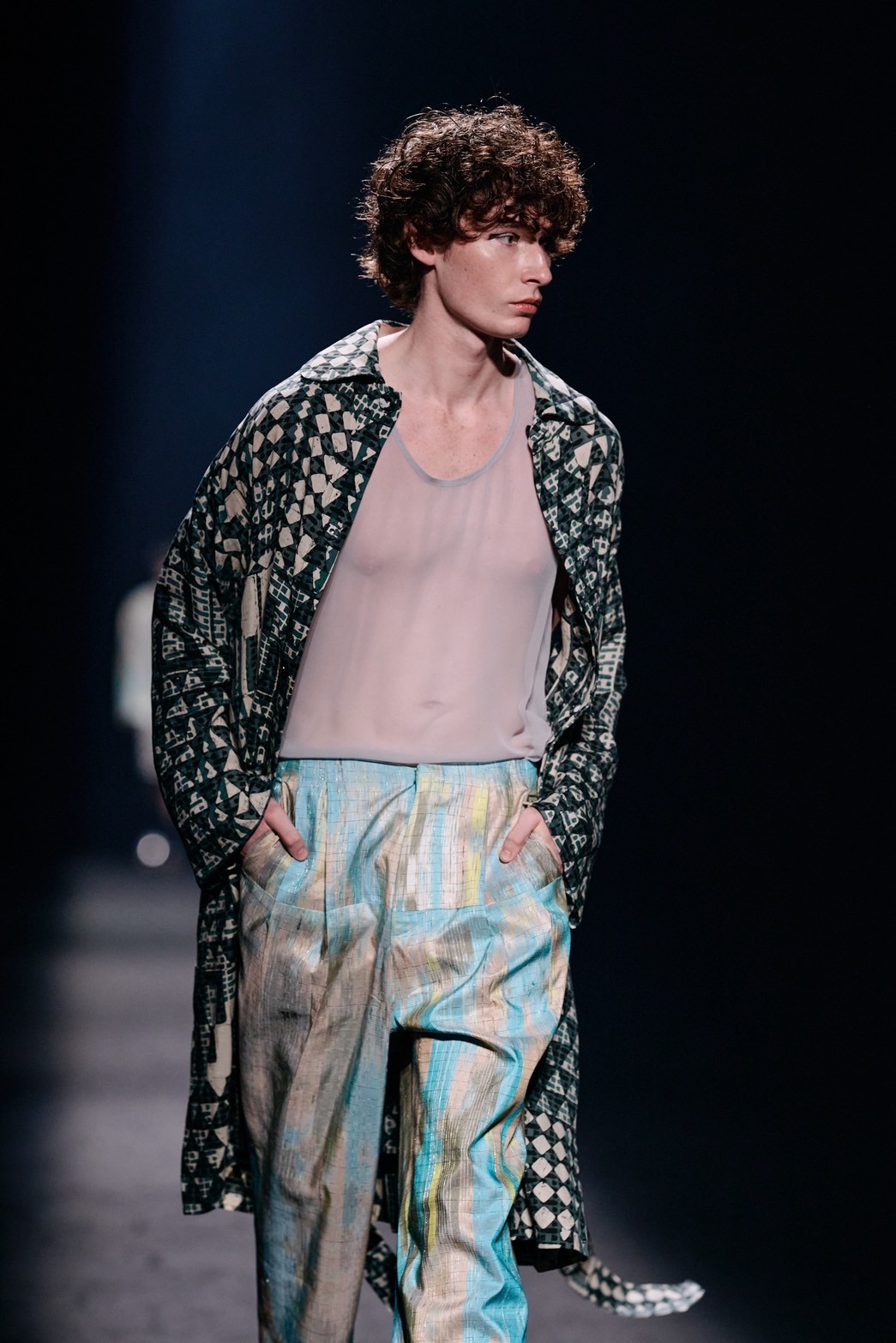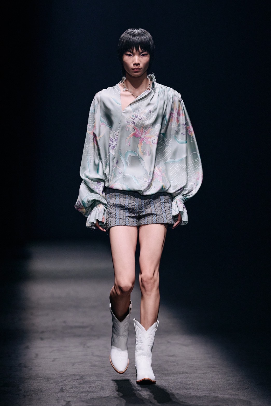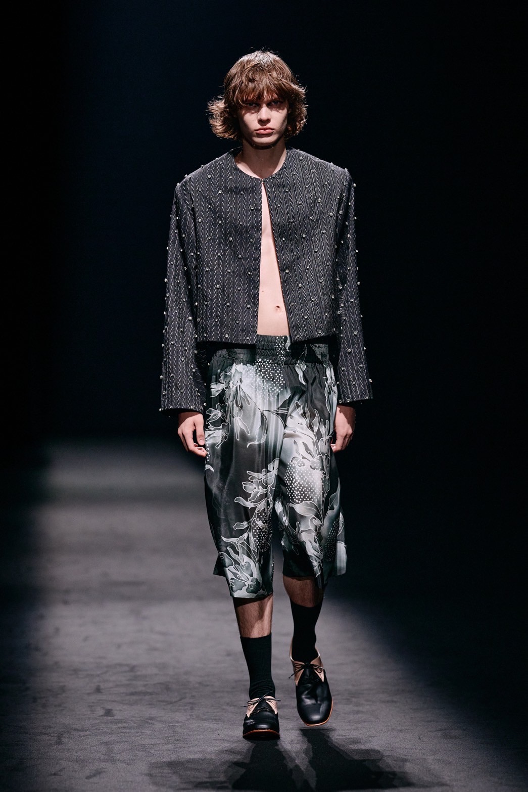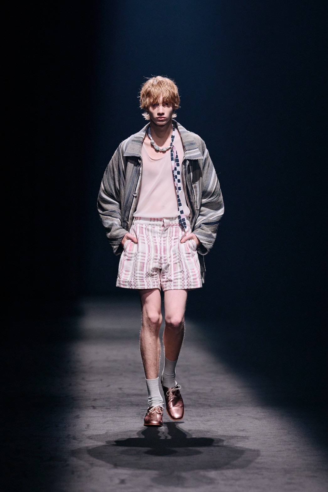 Thai fashion brand WISHARAWISH, led by designer Wisharawish Akarasantisook, renowned for his distinctive creations rooted in Thai textiles, presented its Spring/Summer 2026 collection at Rakuten Fashion Week Tokyo 2026 SS. The collection draws inspiration from the lives of “displaced hunters” in the quiet moments after their daily routines, when they pause to gather forest goods and forage for mushrooms on their way home. These small yet profound joys are delicately translated into contemporary fashion.